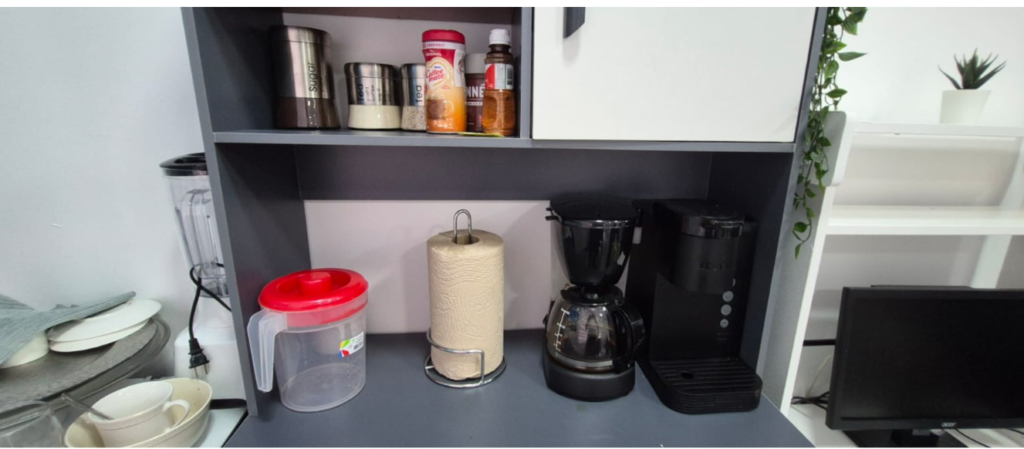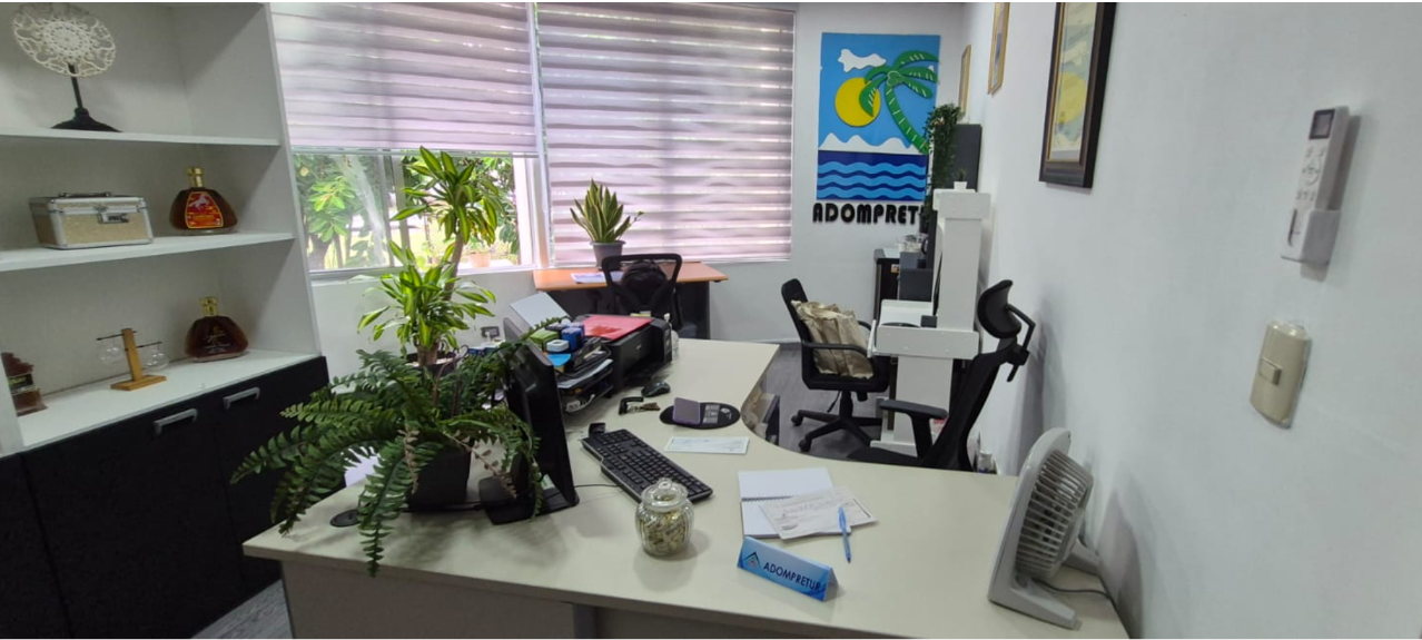 Un recorrido por la oficina de ADOMPRETUR deja sentir que la directiva actual ha decidido replantear su hogar: se ha cambiado la alfombra por un piso de superficie dura (mucho más fácil de limpiar), se ha creado un espacio más íntimo para las reuniones, estaciones para café, té y meriendas y comidas ligeras.